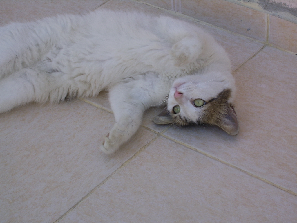 Kedinin adı Çilek. Bizim dinlenme evimizini kedisidir kendileri, gamsız, tasasız bir kedidir.